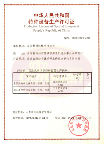 山東桂冠機(jī)械有限公司成立于2008年,注冊(cè)資金1600萬(wàn)元,現(xiàn)有員工200多人,中高級(jí)技術(shù)管理人員45人,占地面積27000多平方米,生產(chǎn)車間面積12000多平方米。公司具備壓力容器產(chǎn)品的設(shè)計(jì)、制造(證書(shū)編號(hào)為:TS2237703-2025)、壓力管道安裝(證書(shū)編號(hào)為T(mén)S3837607-2025)全套壓力容器資質(zhì);通過(guò)國(guó)家ISO9001質(zhì)量管理體系認(rèn)證、美國(guó)ASME認(rèn)證、歐盟CE認(rèn)證;擁有建筑安裝機(jī)電工程專業(yè)承包叁級(jí)資質(zhì)、建筑工程施工總承包叁級(jí)資質(zhì)及對(duì)外貿(mào)易經(jīng)營(yíng)出口權(quán)…